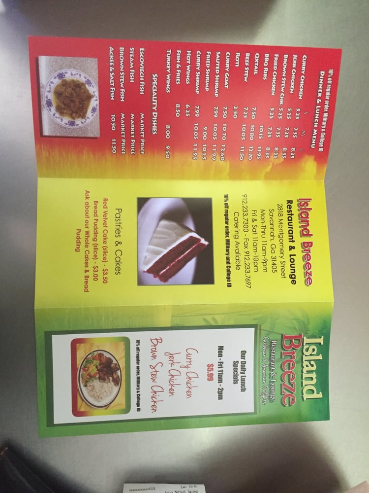 Welcome to Island Breeze, a delightful slice of the Caribbean nestled in Savannah, GA. This unclaimed gem offers a vibrant menu that transports diners to tropical shores, featuring mouthwatering dishes like Jerk Chicken, Curry Shrimp, and the specialty Ackee & Salt Fish. Each plate bursts with flavor, expertly showcasing the rich culinary traditions of the Caribbean.